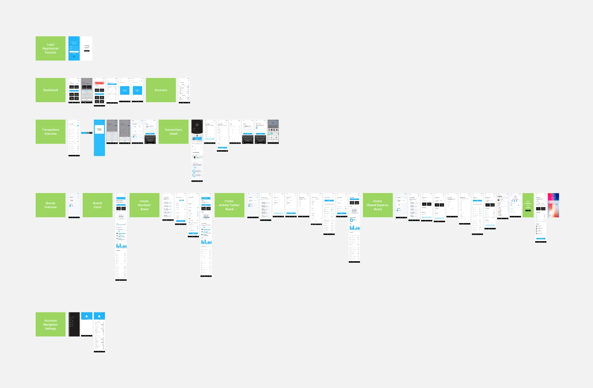 Once our scope was defined, we got to work iterating on the main content pages. The spending trackers, transaction pages, and dashboards all went through numerous versions until we settled on final designs. Close contact with internal stakeholders and existing customers guided our decision making.